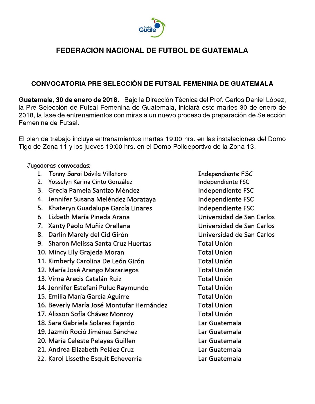 PRIMERA CONVOCATORIA PRE SELECCIÓN DE FUTSAL FEMENINA DE GUATEMALA