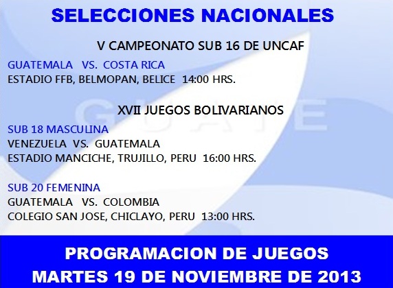 JUEGOS SELECCIONES NACIONALES MARTES 19 DE NOVIEMBRE 2013