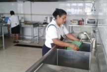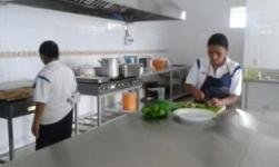 El área de cocción ha sido equipada con un bloque de cocinas industriales con parrilla y extractores tipo campana, cuenta con varias mesas especiales para manipulación de alimentos, un horno microondas, un horno de alta tecnología para la elaboración de pan y repostería y fue instalada una cámara grande de refrigeración para producto terminados y alimentos perecederos, así como un amplio espacio para almacenamiento tipo bodega con estanterías para productos no perecederos.