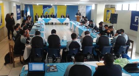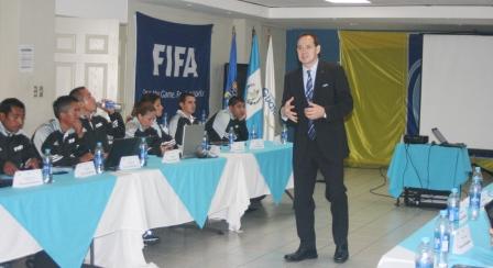 Guatemala, 18 de noviembre del 2014. Con la Presencia del Lic. Guillermo Pivaral Director de Asunto Legales y Deportivos de la FEDEFUT, Instructores Internacionales FIFA, miembros de la Comisión y Departamento de Arbitraje y árbitros elite de todo el país, dio inicio el CURSO PARA ARBITROS Y ARBITROS ASISTENTES ELITE DE GUATEMALA 2014, evento organizado por el Programa RAP/FIFA, en coordinación con la Federación Nacional de Fútbol de Guatemala.
