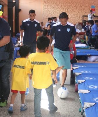 Guatemala, 06 de octubre de 2015. La Selección Nacional de Futbol de Guatemala dejo por un momento la sede de entrenamientos en el Proyecto Goal por el Albergue Municipal de Santa Catarina Pínula, con el objetivo de visitar y compartir con las familias afectadas en la tragedia de la Colonia el Cambray II.