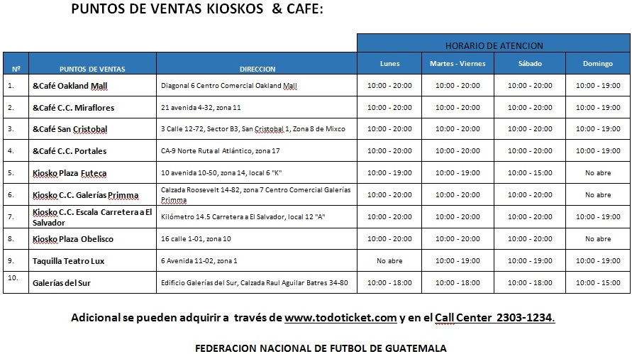 DEFINIDOS LOS PUNTOS DE VENTA PARA OBTENER LOS BOLETOS GUATEMALA vs. ESTADOS UNIDOS