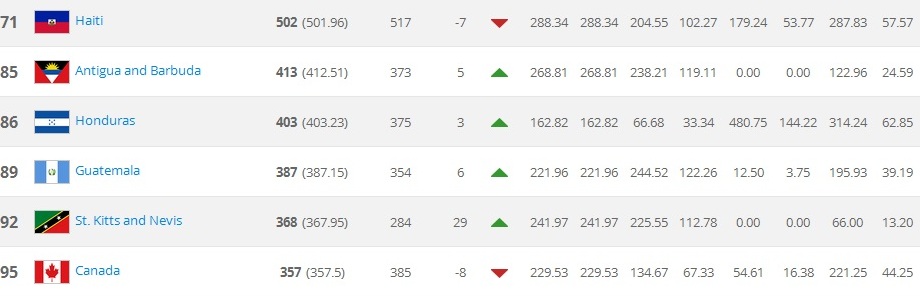 En la clasificación general del ranking CONCACAF, Guatemala se ubica en la posición No. 10