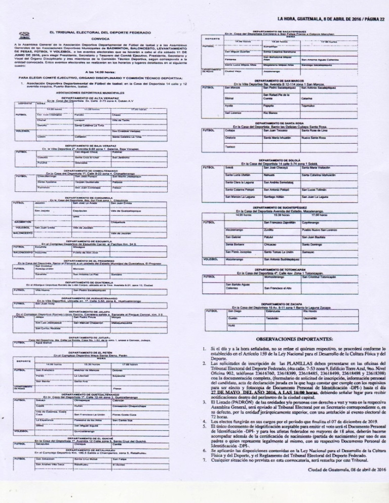 Convocatoria elecciones de la Asamblea General de la Asociación Deportiva Departamental de Fútbol de Izabal