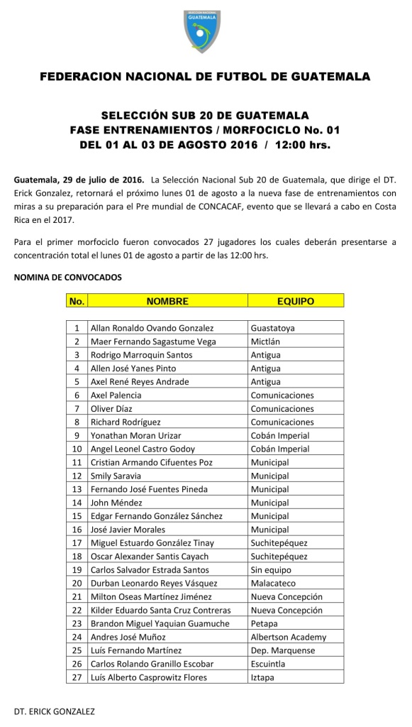 SUB 17 FEMENINA / CONVOCATORIA MICROCICLO No. 1 DEL 13 AL 15 DE ENERO 2020
