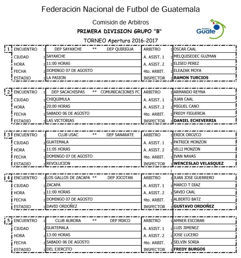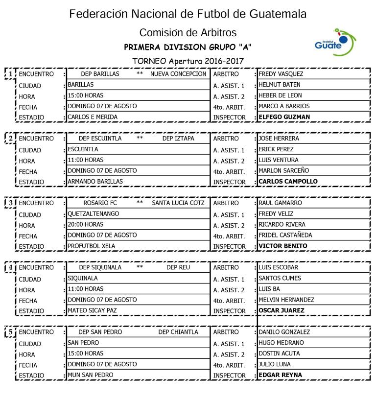 PRIMERA DIVISION - NOMBRAMIENTOS ARBITRALES 6 Y 7 DE AGOSTO DE 2016