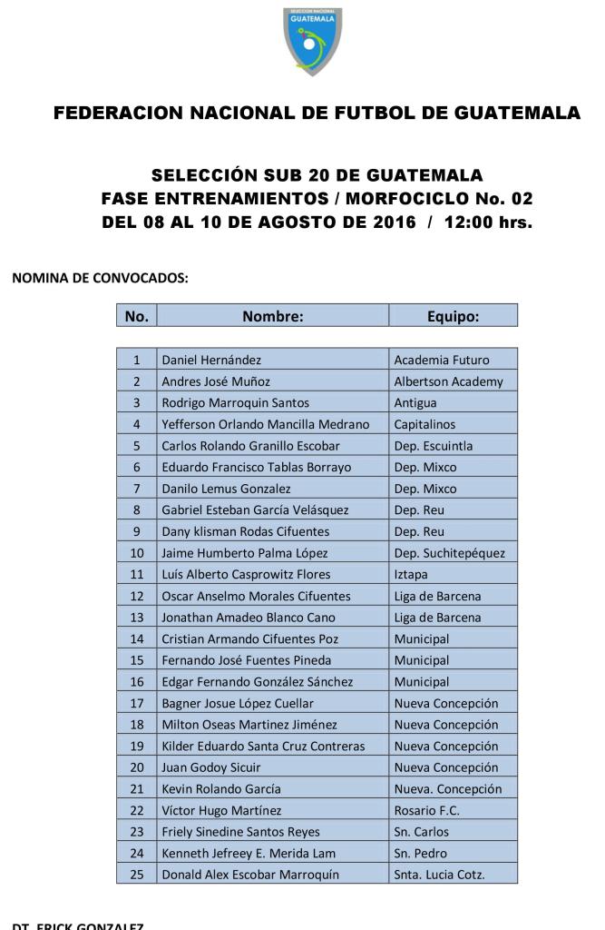 SELECCION SUB 20 - MORFOCICLO No. 2 DEL 08 AL 10 DE AGOSTO 2016