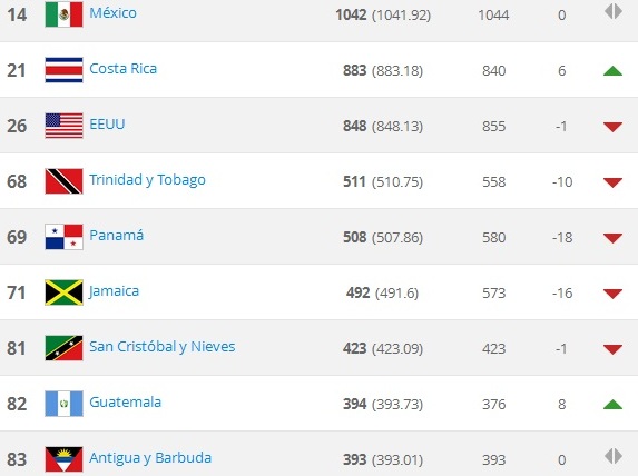 En la clasificación del ranking de CONCACAF, Guatemala escaló a la posición No. 8 de la confederación.