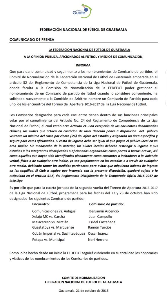 COMUNICADO DE PRENSA / SEGUIMIENTO NOMBRAMIENTOS COMISARIOS DE PARTIDOS