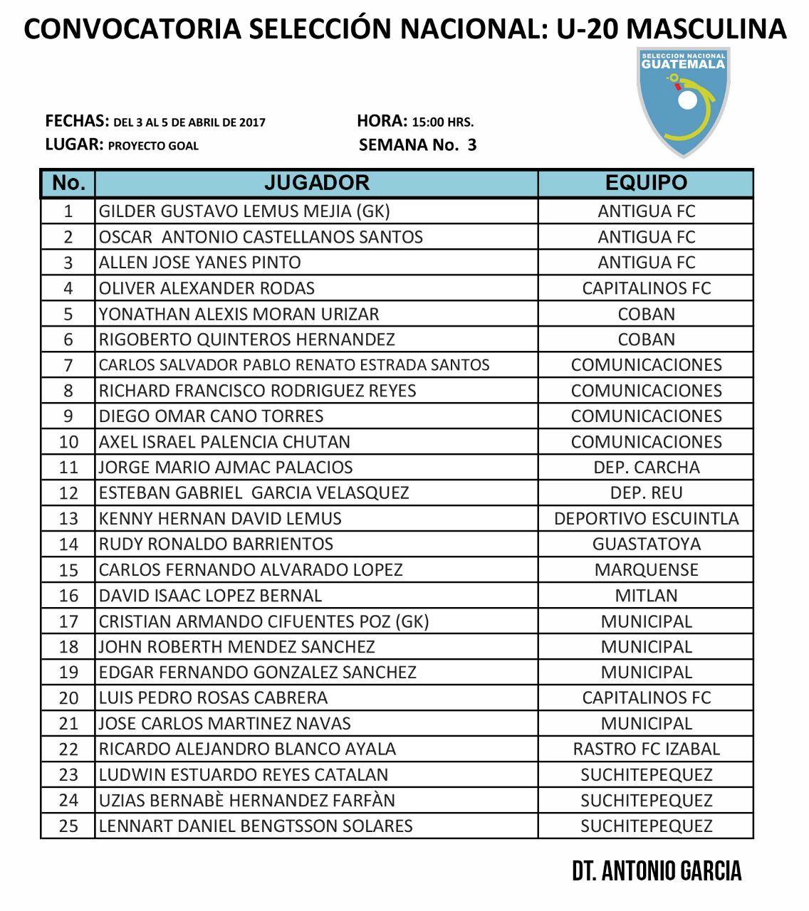 SELECCION CICLO OLIMPICO - CONVOCATORIA DEL 3 AL 5 DE ABRIL DE 2017
