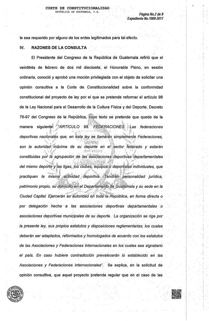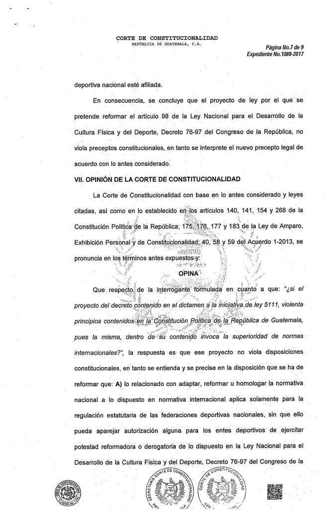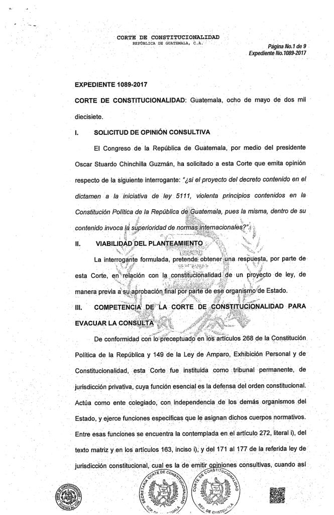 Opinión consultiva de la Corte de Constitucionalidad que NO advierte vicios de inconstitucionalidad