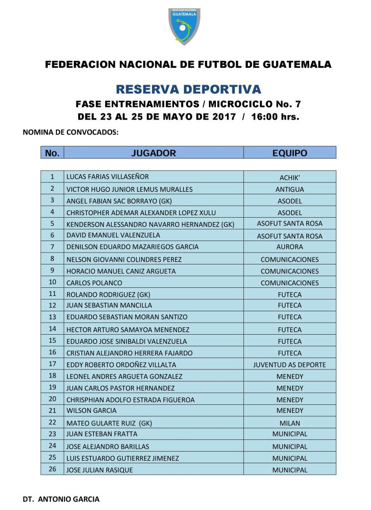 RESERVA DEPORTIVA / MICROCICLO No. 7 DEL 23 AL 25 DE MAYO 2017