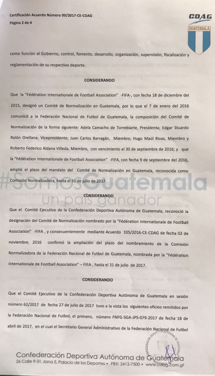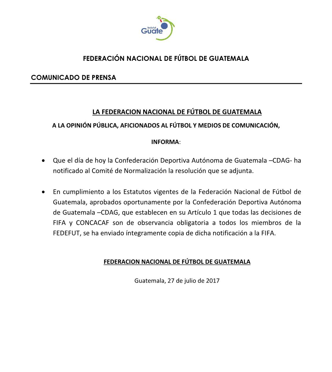 COMUNICADO OFICIAL / RESOLUCION CDAG
