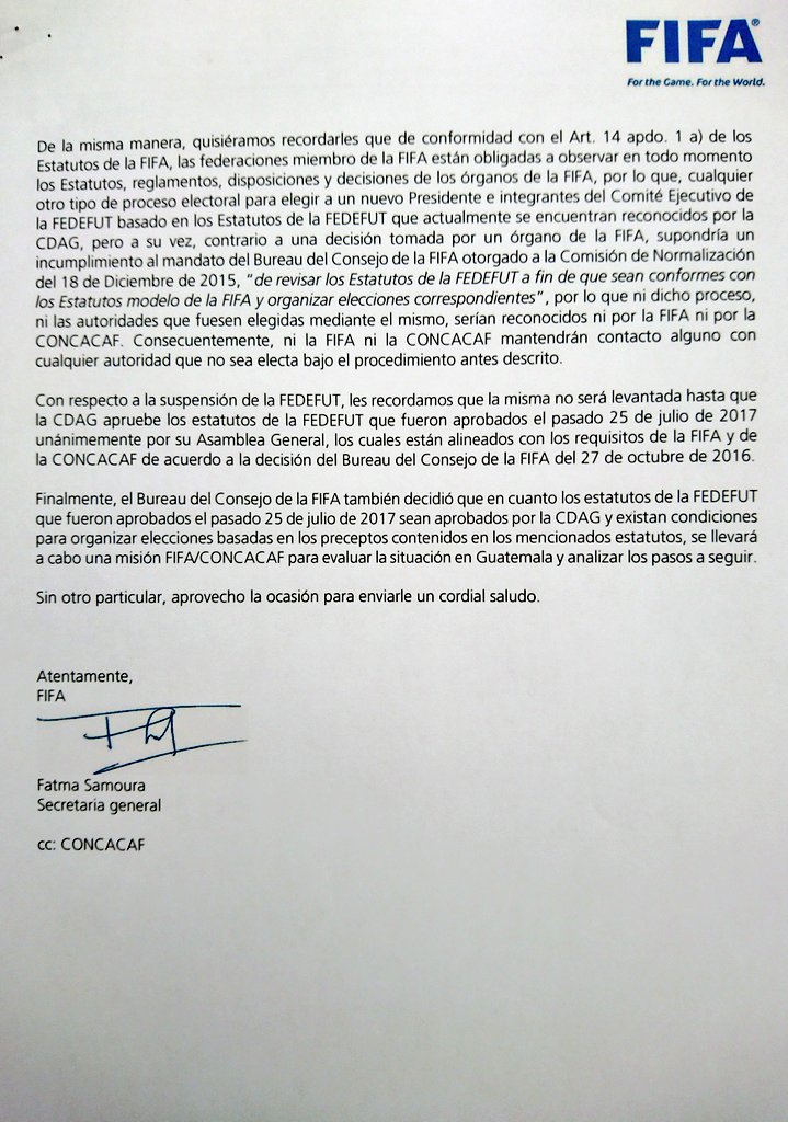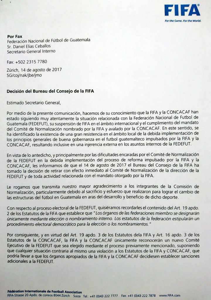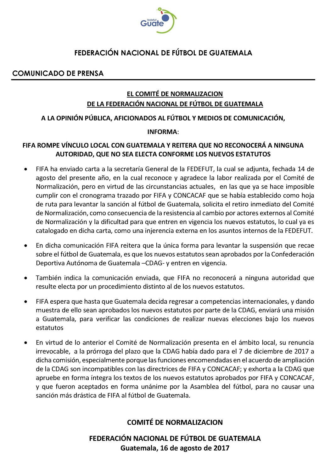COMUNICADO OFICIAL / FIFA ROMPE VINCULO LOCAL CON GUATEMALA