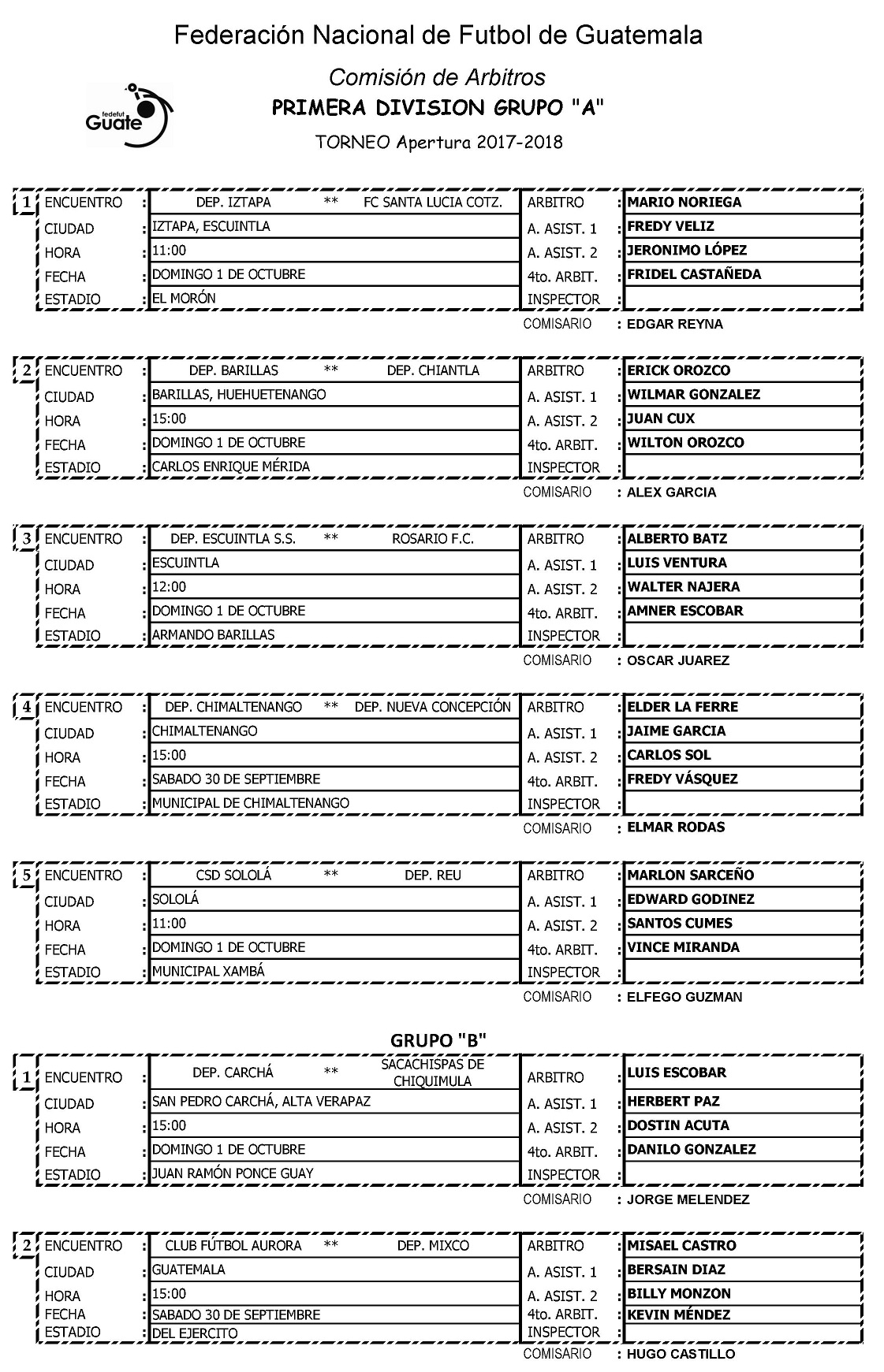 PRIMERA DIVISION / NOMBRAMIENTOS ARBITRALES PRIMERA JORNADA DEL 30 SEPTIEMBRE Y 01 DE OCTUBRE 2017