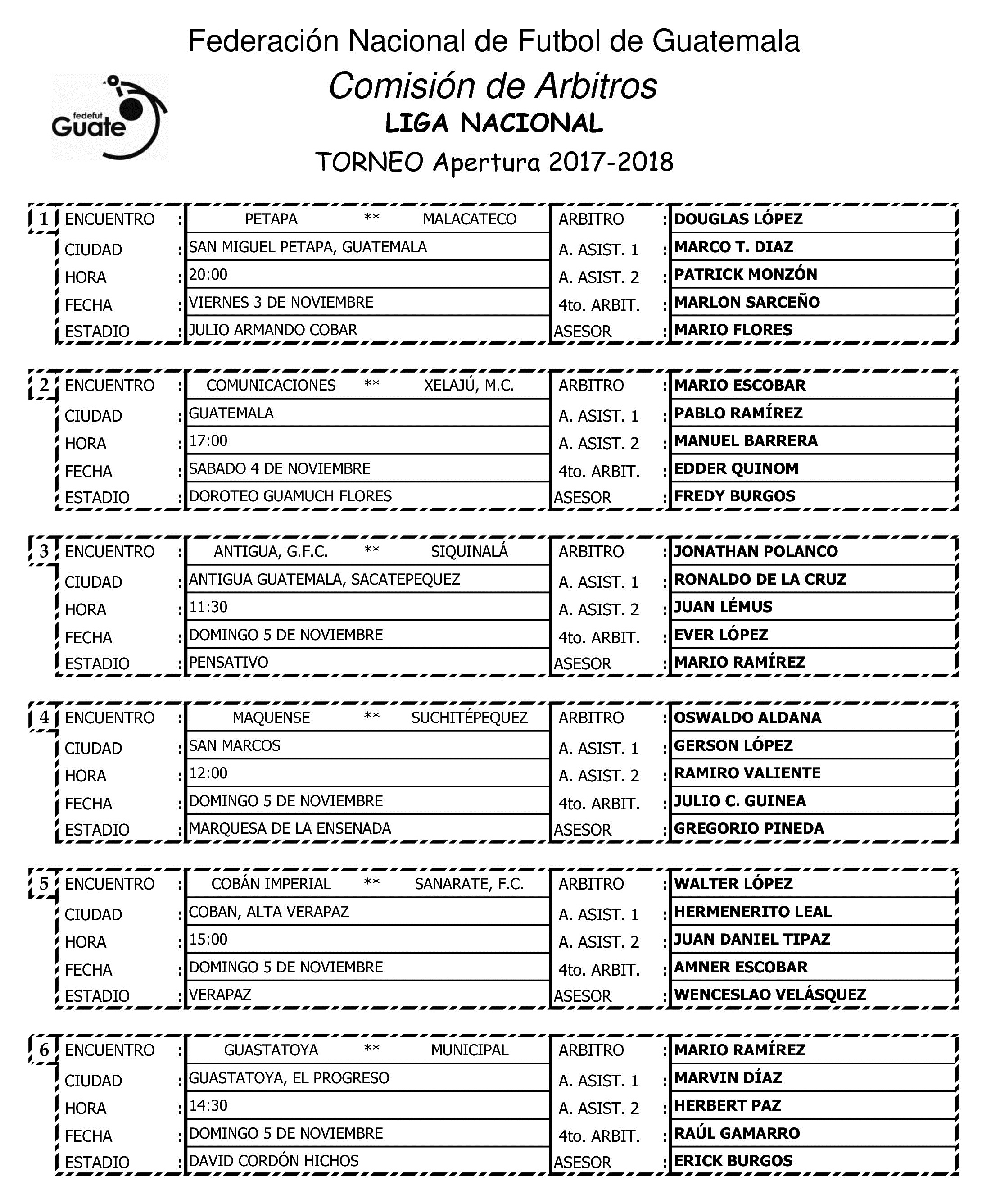 LIGA NACIONAL / NOMBRAMIENTOS ARBITRALES JORNADA DEL 3 AL 5 DE NOVIEMBRE 2017