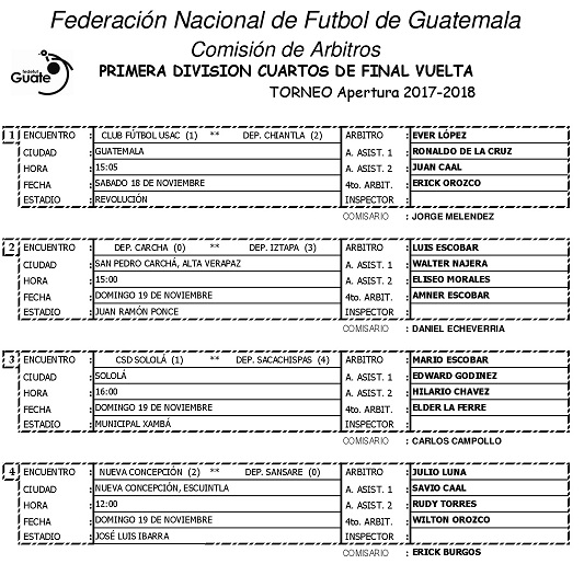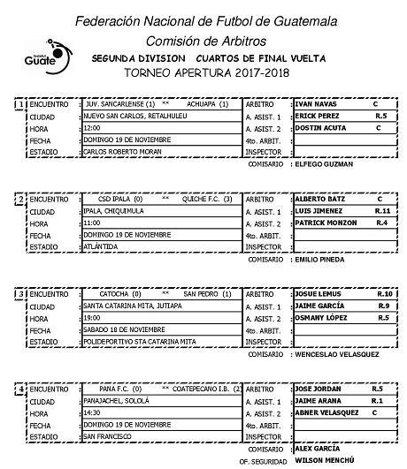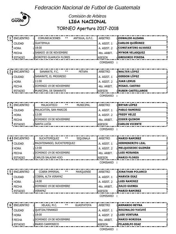 NOMBRAMIENTOS ARBITRALES / LIGA NACIONAL, PRIMERA Y SEGUNDA DIVISION / 18 Y 19 NOV.