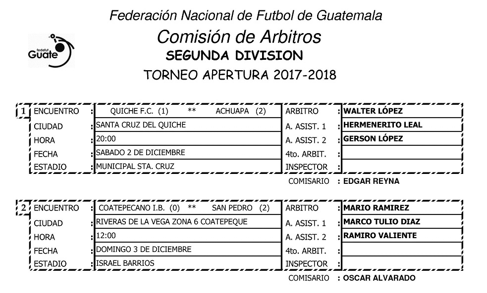 SEGUNDA DIVISION / NOMBRAMIENTO ARBITRAL SEMIFINAL JUEGOS DE VUELTA