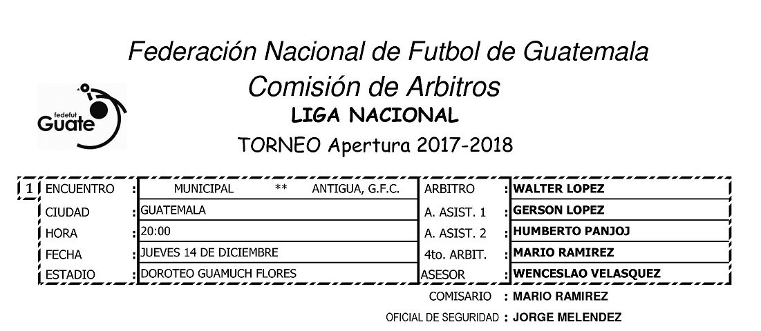 LIGA NACIONAL / NOMBRAMIENTO ARBITRAL FINAL JUEGO DE IDA