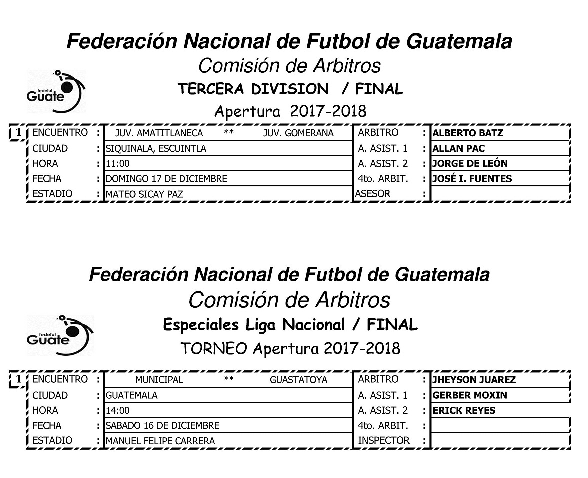 TERCERA DIVISION / NOMBRAMIENTOS ARBITRAL FINAL