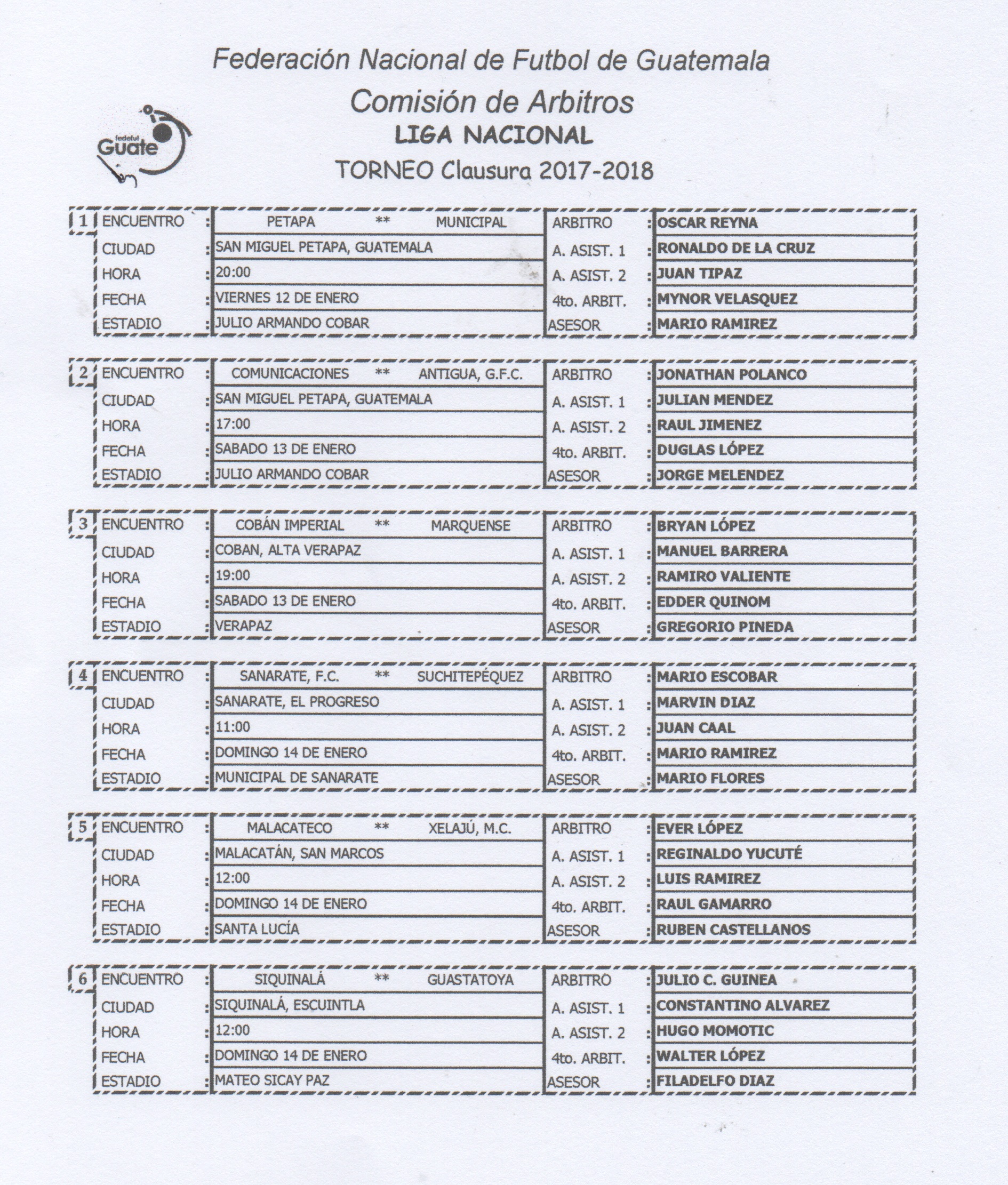 LIGA NACIONAL / NOMBRAMIENTOS ARBITRALES PRIMERA JORNADA - TORNEO CLAUSURA 2018
