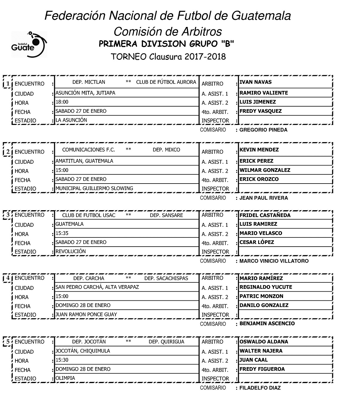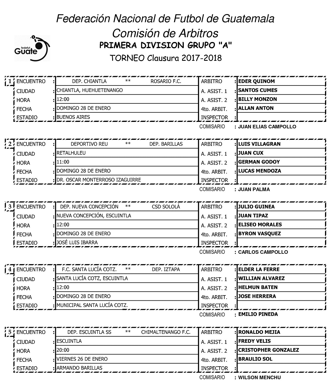 PRIMERA DIVISION / NOMBRAMIENTOS ARBITRALES TERCERA JORNADA - TORNEO CLAUSURA 2018