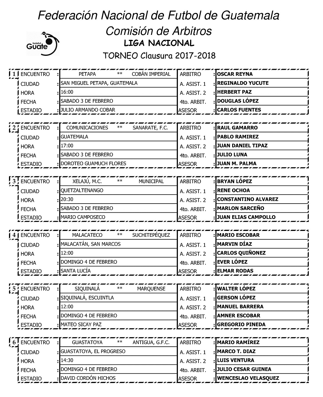 LIGA NACIONAL / NOMBRAMIENTOS ARBITRALES QUINTA JORNADA - TORNEO CLAUSURA 2018