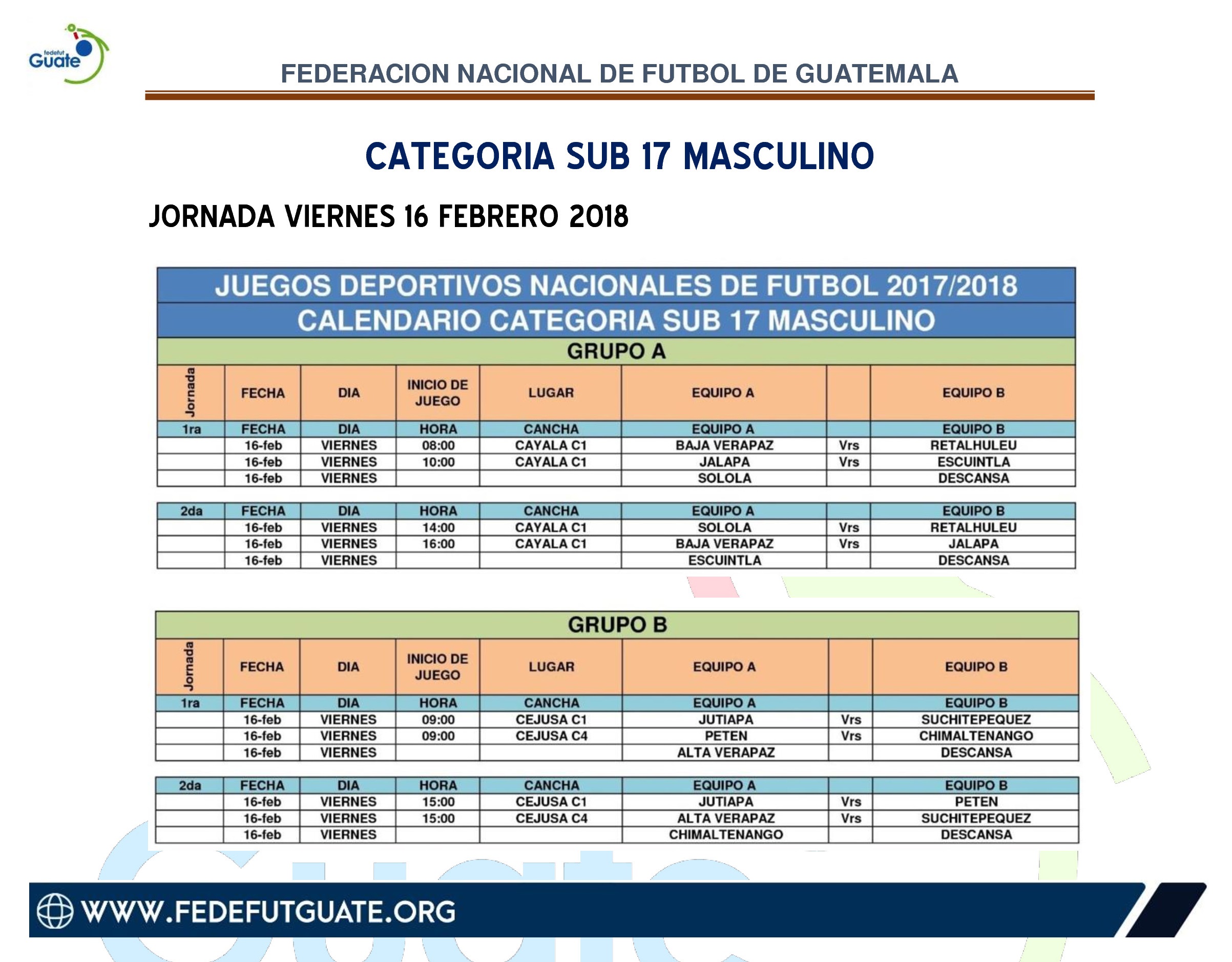 CATEGORIA SUB 17 MASCULINA / JORNADA VIERNES 16 DE FEBRERO