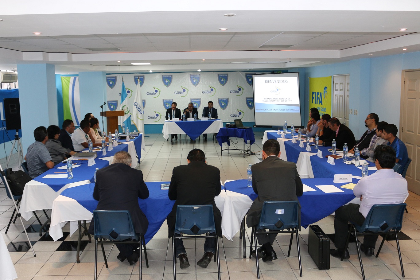 La primera mesa técnica fue dirigida por el Presidente de la Federación Lic. Jorge Mario Veliz, y contó con la participación de Dirigentes y Gerentes de Ligas Afiliadas, representantes de la Asociaciones de Futbolistas Guatemaltecos y su Presidente Carlos Figueroa y Directores de diferentes áreas de la Fedefut entre otros.