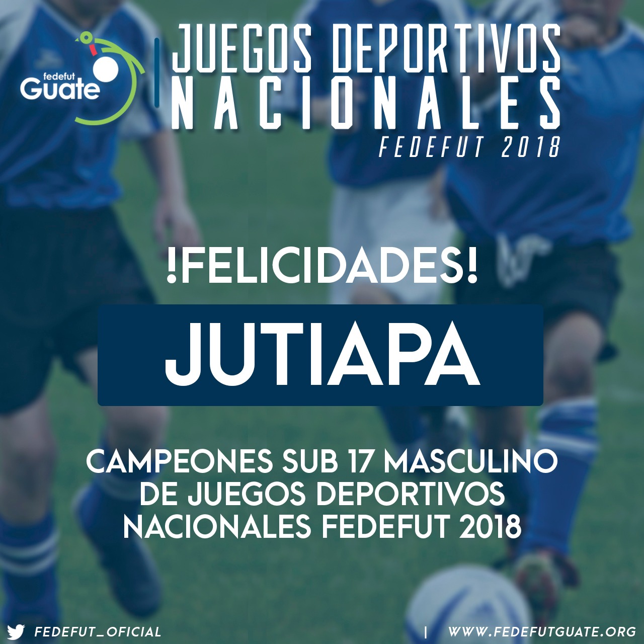 ¡¡¡ FELICITACIONES ¡¡¡ JUTIAPA SUB 17 - CAMPEON DE LOS JUEGOS DEPORTIVOS NACIONALES FEDEFUT 2017/18