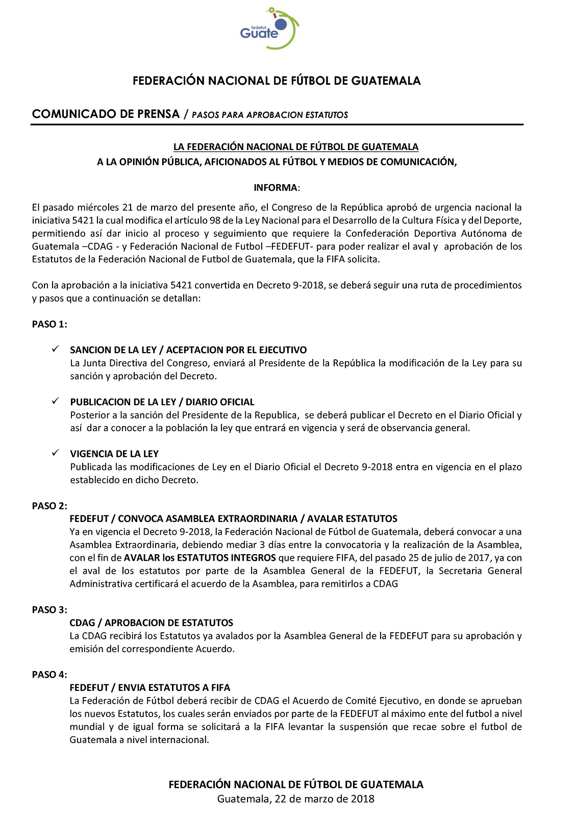 COMUNICADO OFICIAL / PASOS PARA APROBACION DE ESTATUTOS