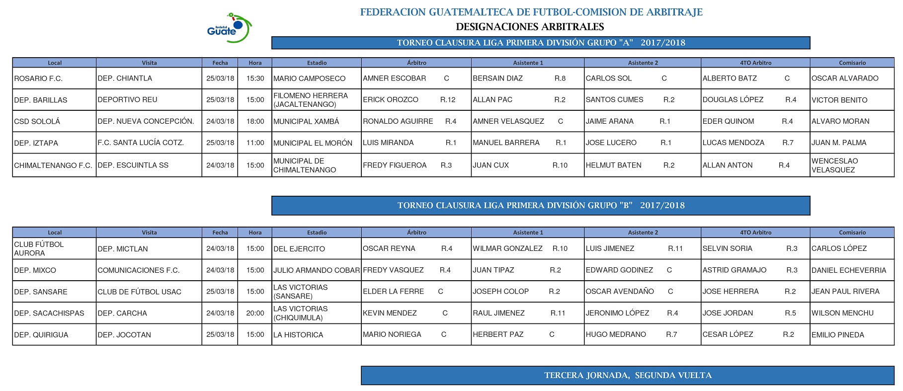 PRIMERA DIVISION / NOMBRAMIENTOS ARBITRALES JORNADA 24 Y 25 MARZO- TORNEO CLAUSURA 2018