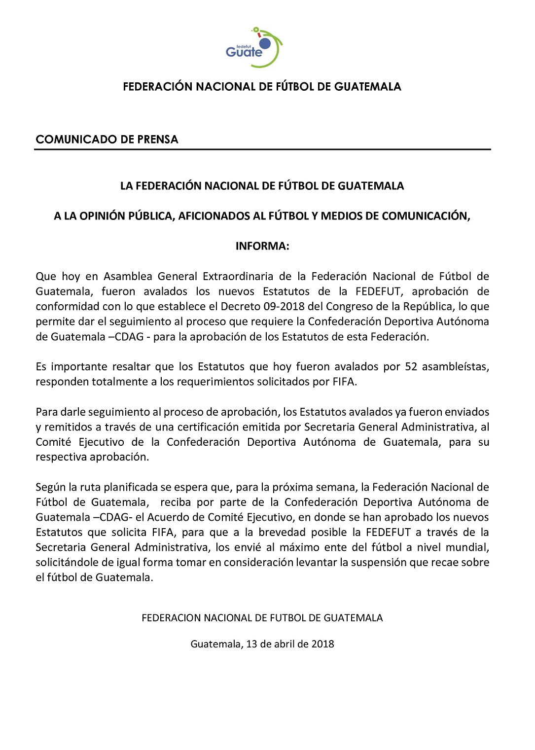 COMUNICADO OFICIAL / ASAMBLEA AVALA ESTATUTOS