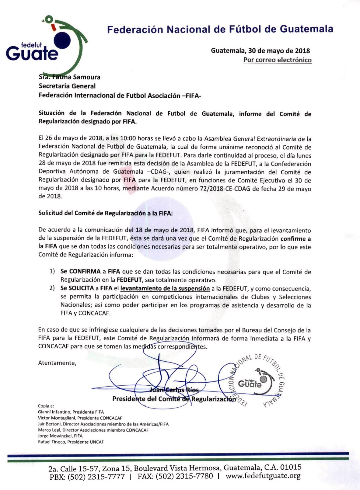 COMUNICADO DE PRENSA / COMUNICACION ENVIADA A FIFA