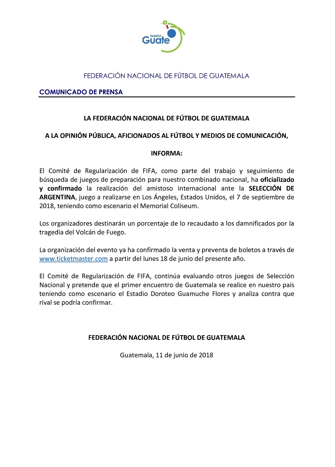 COMUNICADO DE PRENSA / CONFIRMADO JUEGO AMISTOSO INTERNACIONAL ANTE ARGENTINA