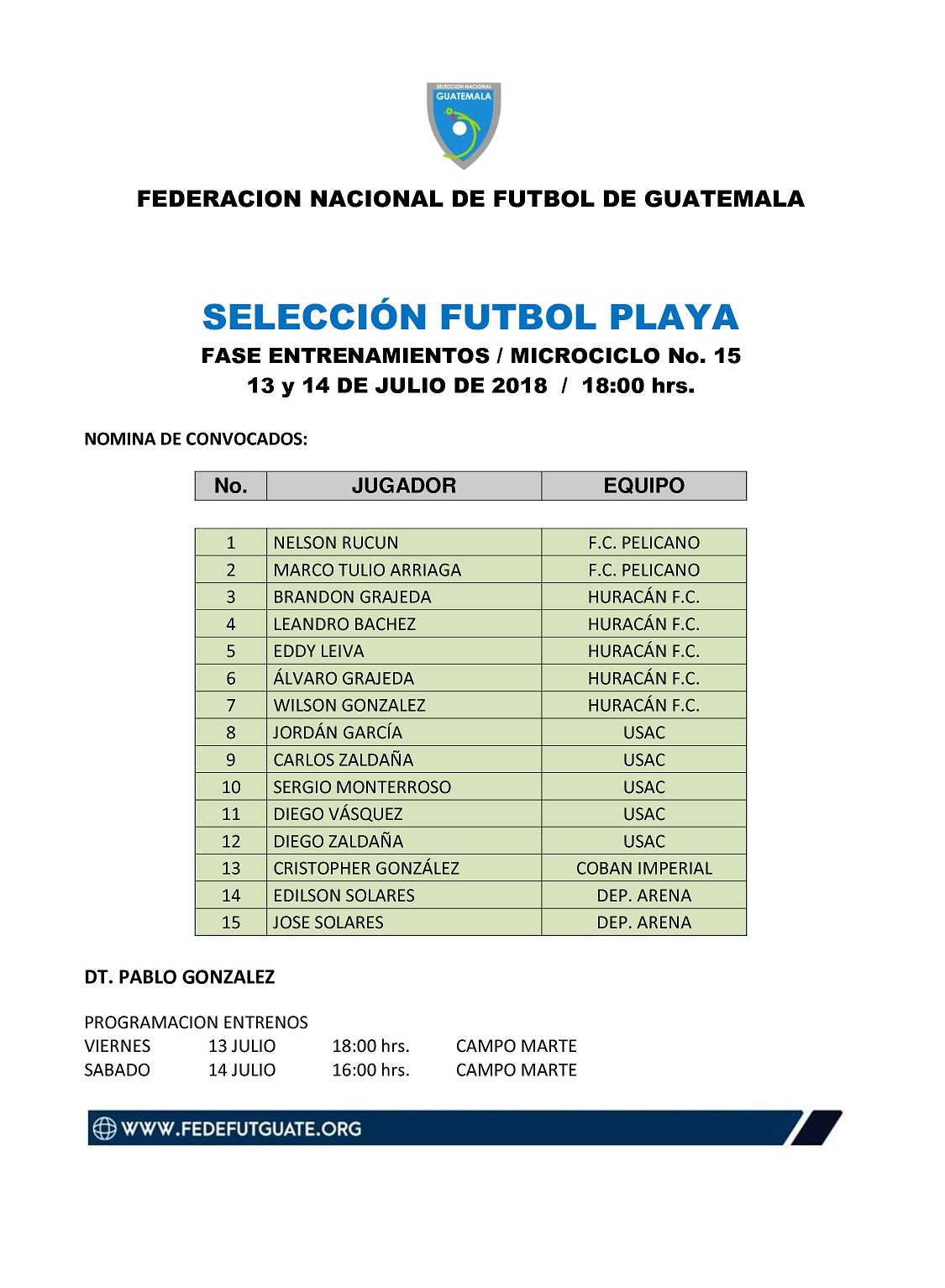 SELECCION FUTBOL PLAYA / MICROCICLO No. 15 / ENTRENAMIENTOS 13 y 14 DE JULIO 2018