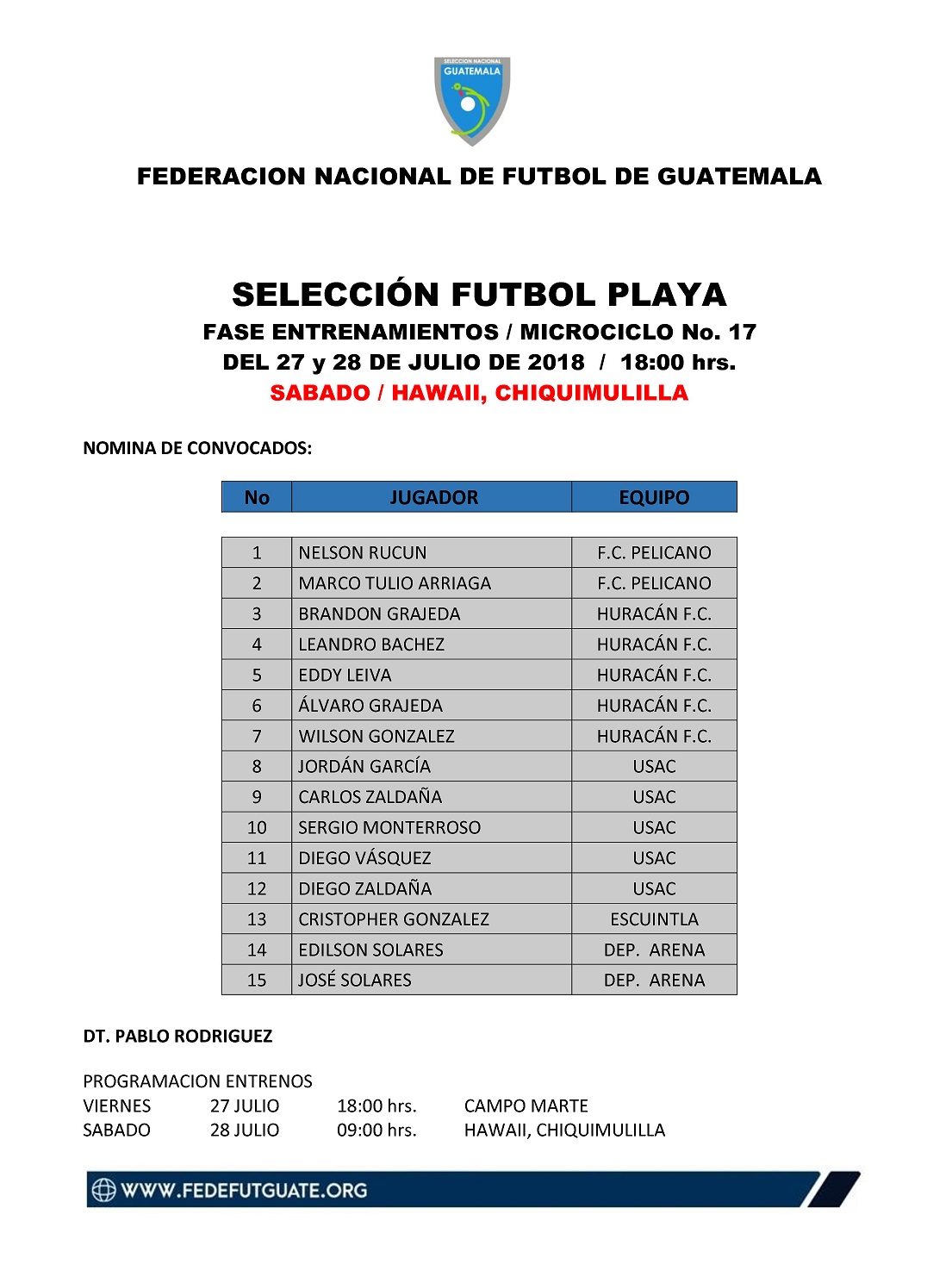 SELECCION FUTBOL PLAYA / MICROCICLO No. 17 / ENTRENAMIENTOS 27 y 28 DE JULIO 2018