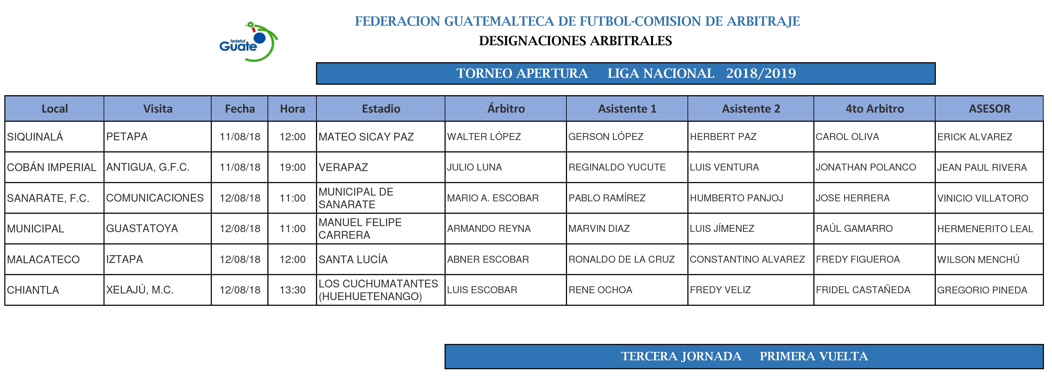 LIGA NACIONAL / NOMBRAMIENTOS ARBITRALES TERCERA JORNADA - TORNEO APERTURA 2018-2019