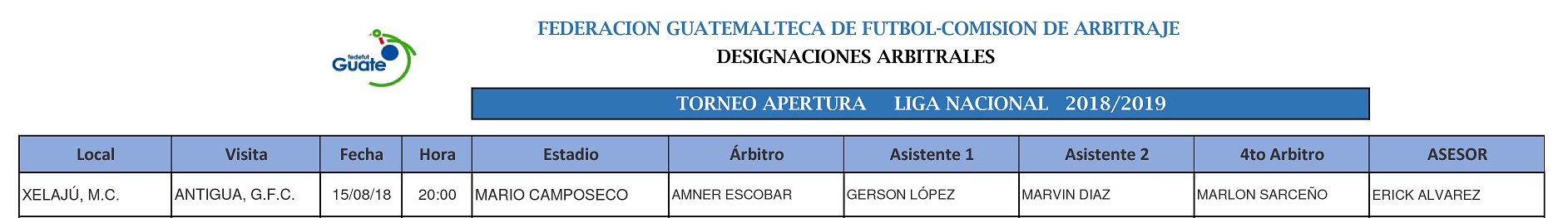 LIGA NACIONAL / NOMBRAMIENTO ARBITROS XELAJU MC. vs. ANTIGUA G.F.C.