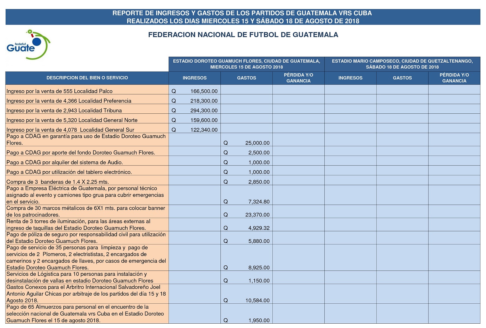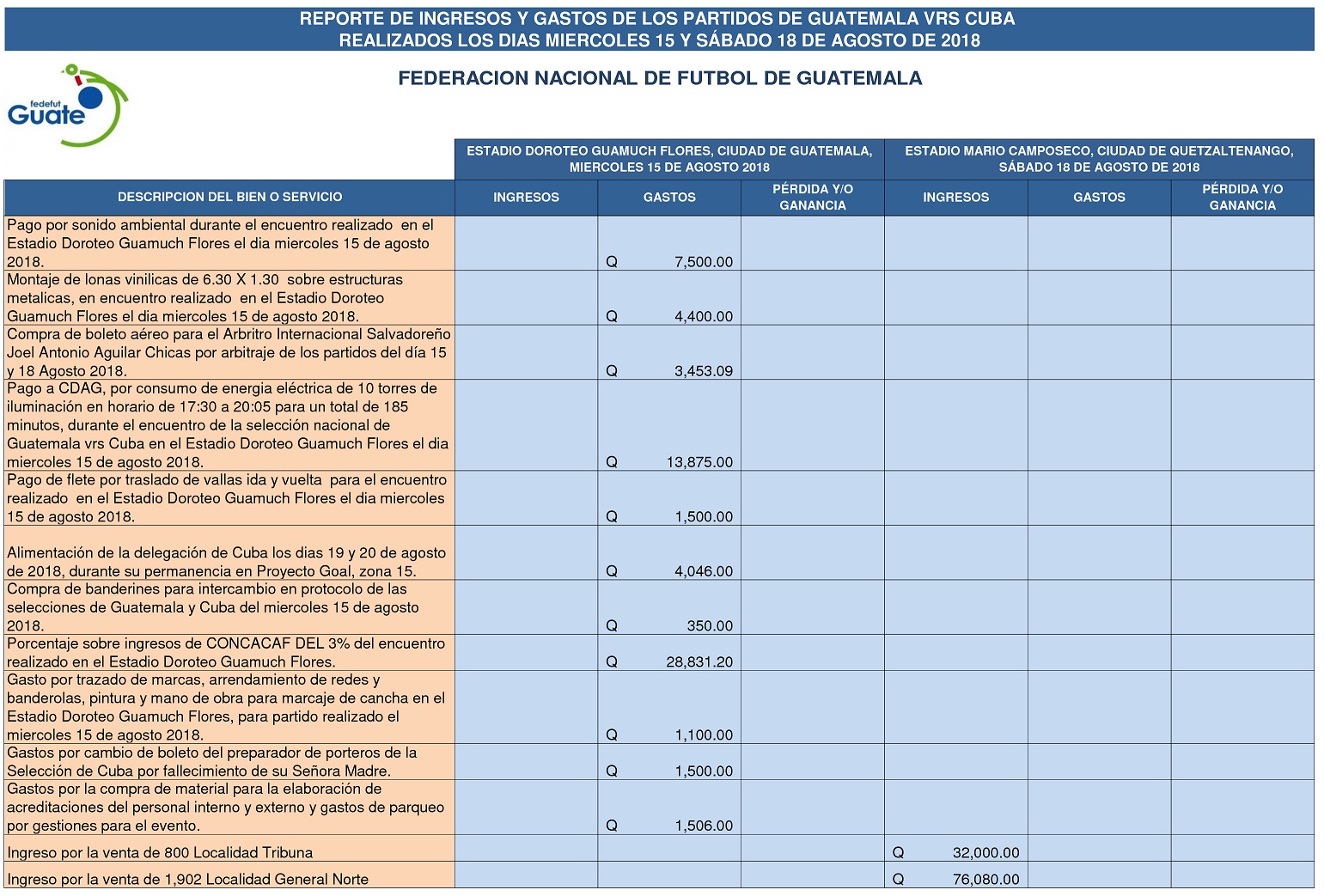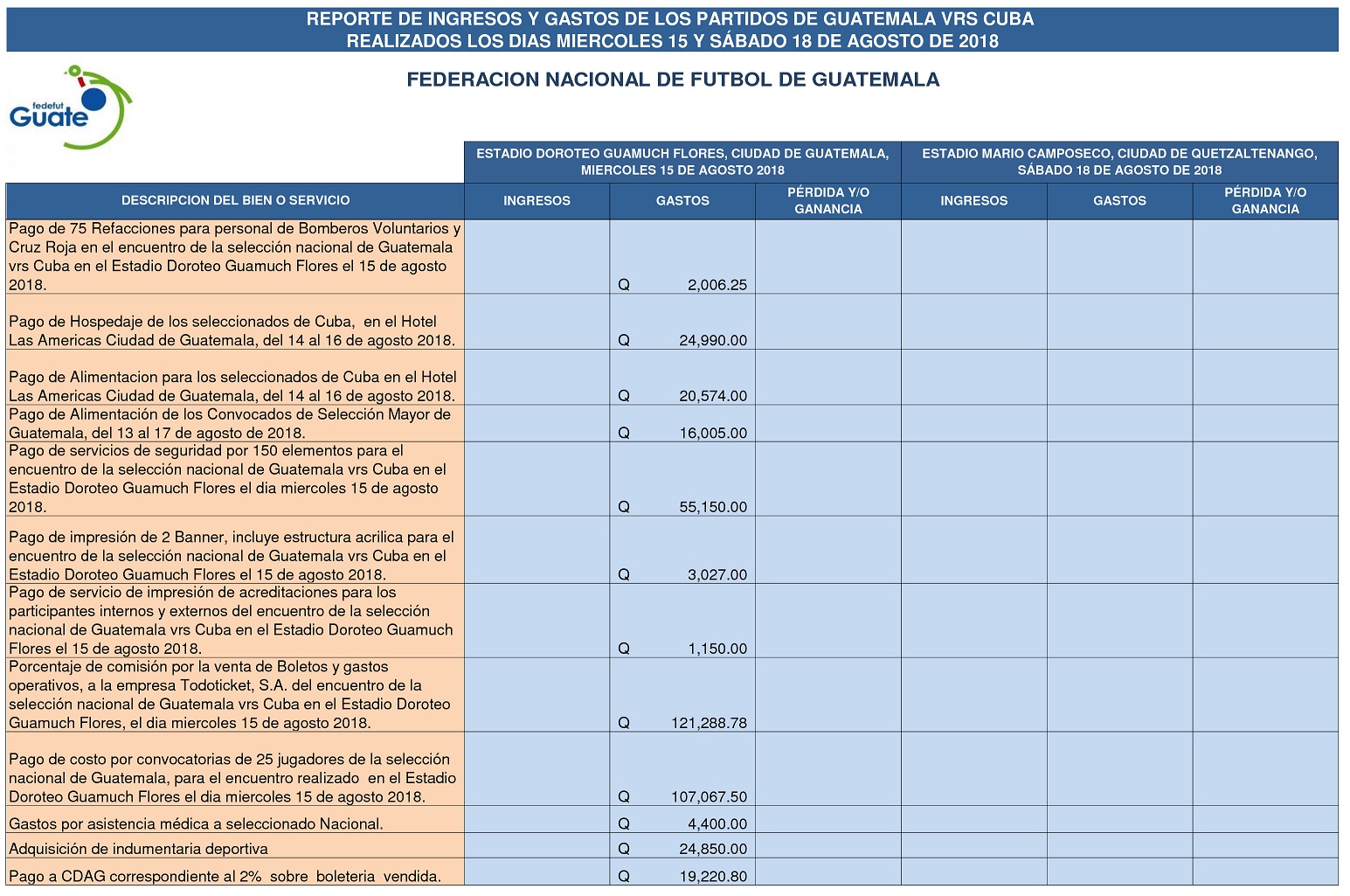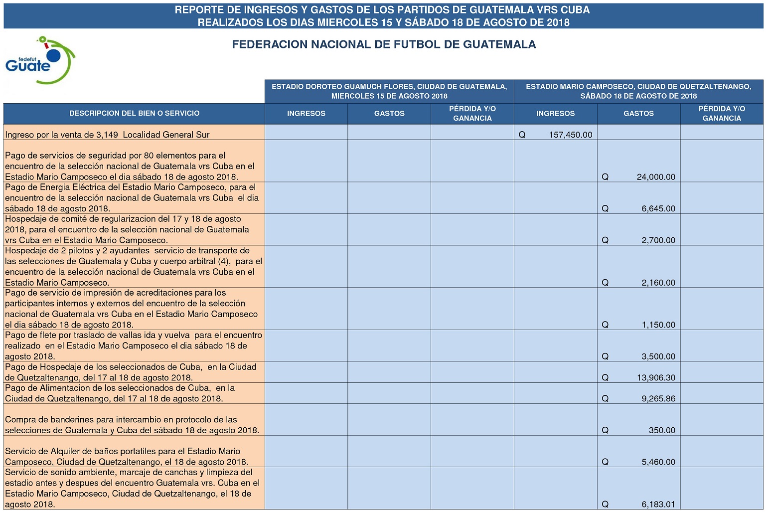 INFORME FINANCIERO DE INGRESOS Y GASTOS / JUEGOS INTERNACIONALES SELECCIONES DE GUATEMALA vs. CUBA