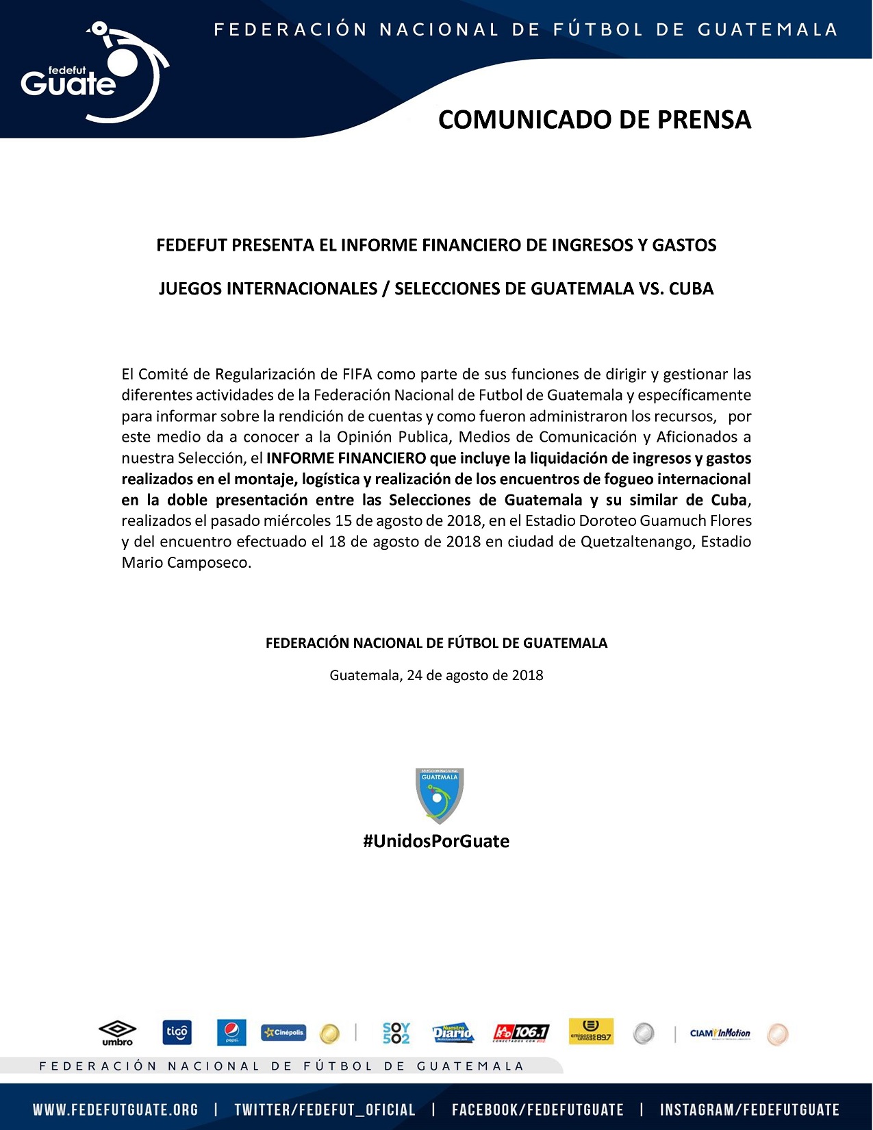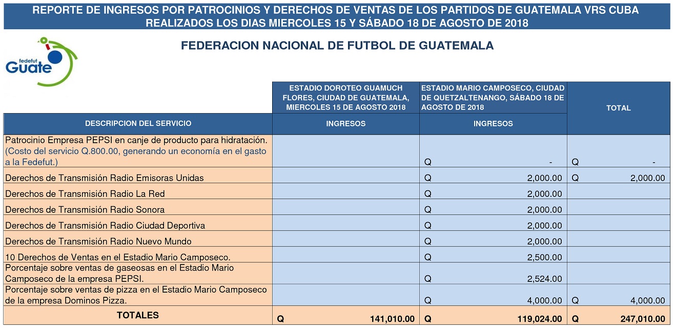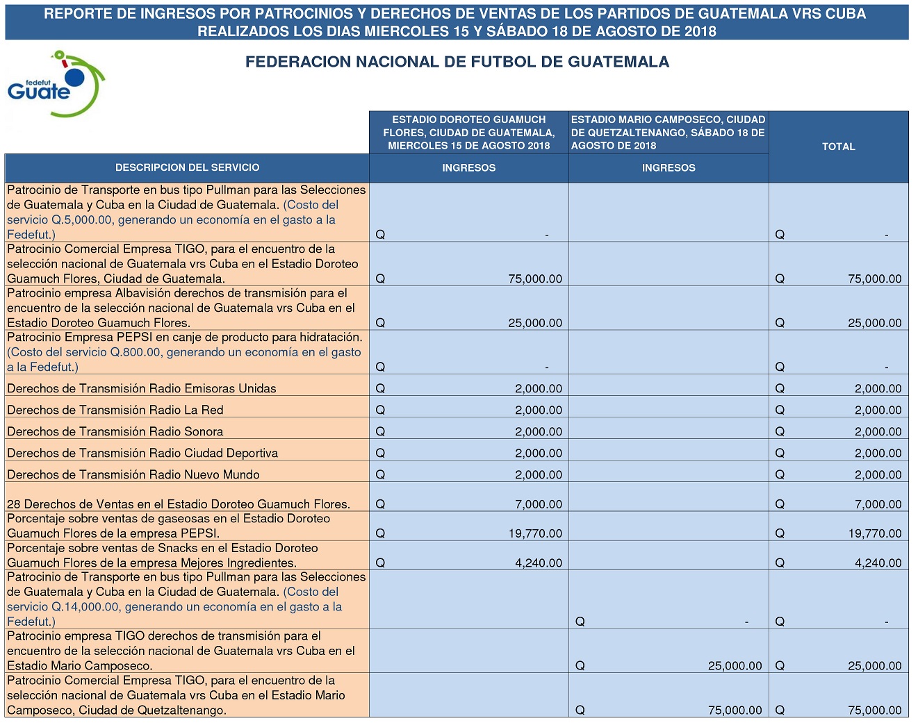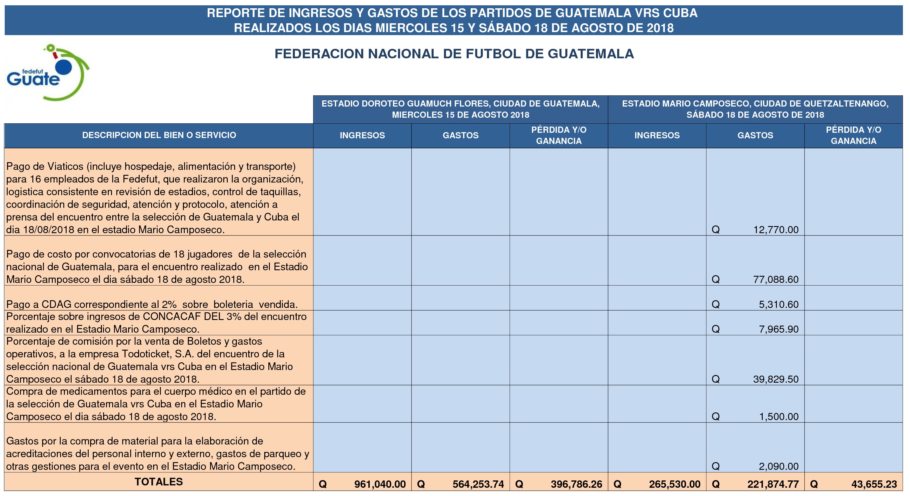 INFORME FINANCIERO DE INGRESOS Y GASTOS / JUEGOS INTERNACIONALES SELECCIONES DE GUATEMALA vs. CUBA