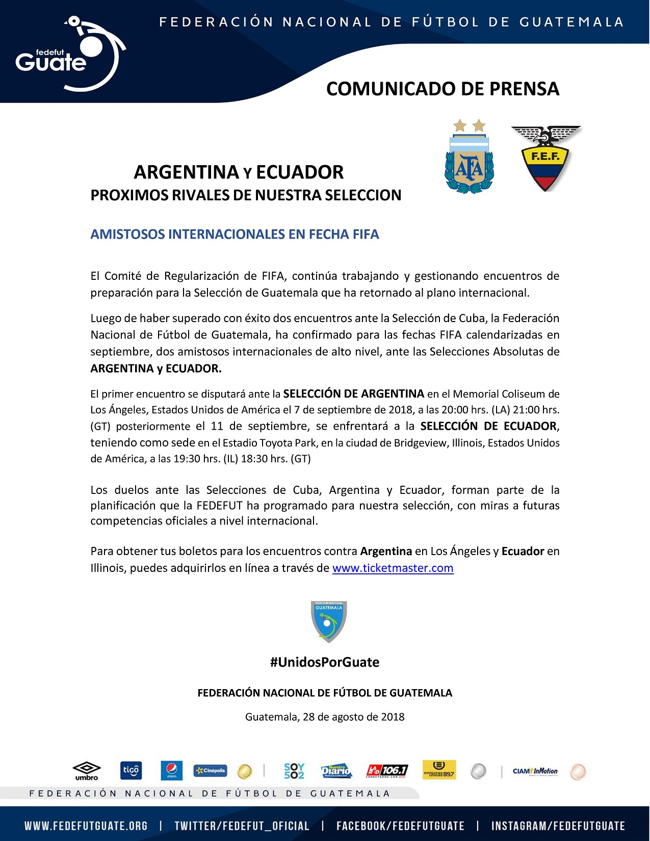 ARGENTINA y ECUADOR / PROXIMOS RIVALES DE NUESTRA SELECCION (Horarios Guatemala)