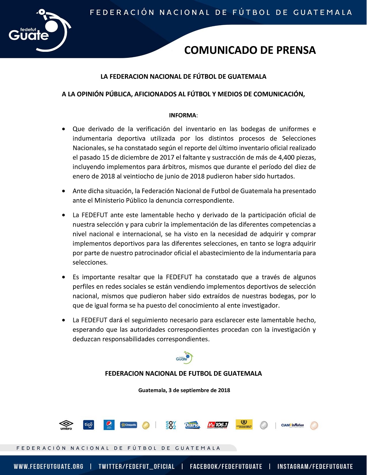 COMUNICADO DE PRENSA / FEDEFUTGUATE