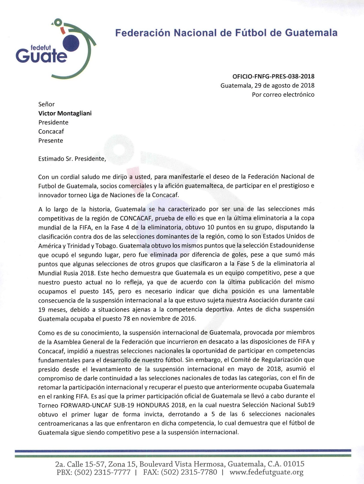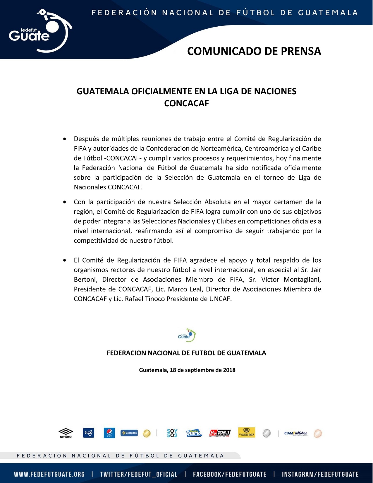 COMUNICADO DE PRENSA / GUATEMALA OFICIALMENTE EN LA LIGA DE NACIONES CONCACAF