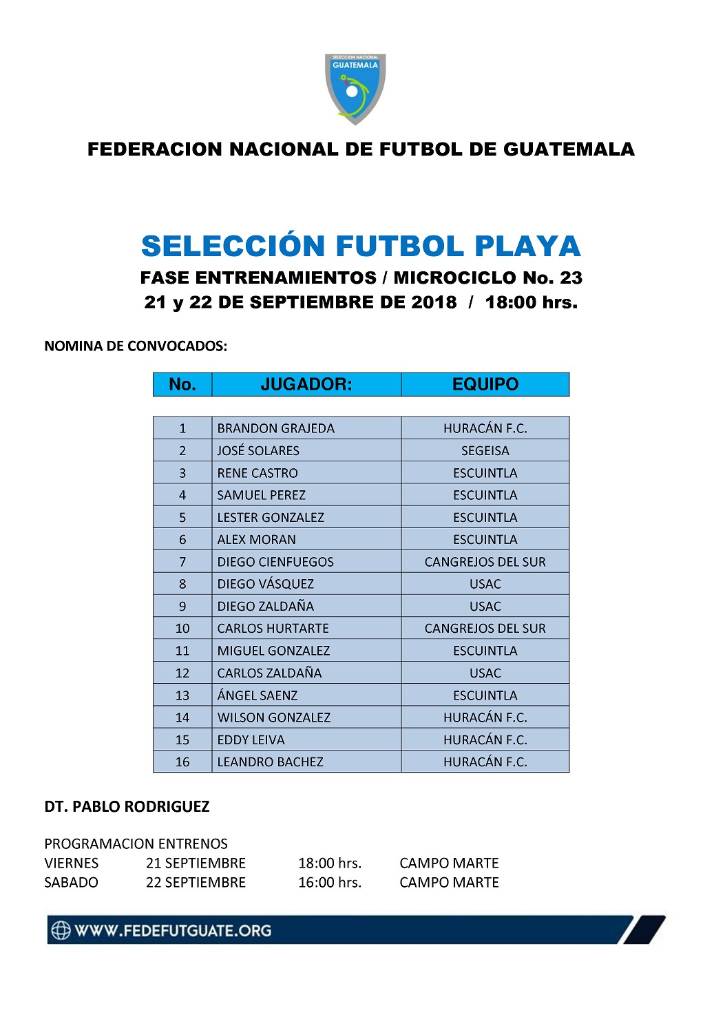 SELECCION FUTBOL PLAYA / MICROCICLO No. 23 / ENTRENAMIENTOS 21 y 22 DE SEPTIEMBRE 2018