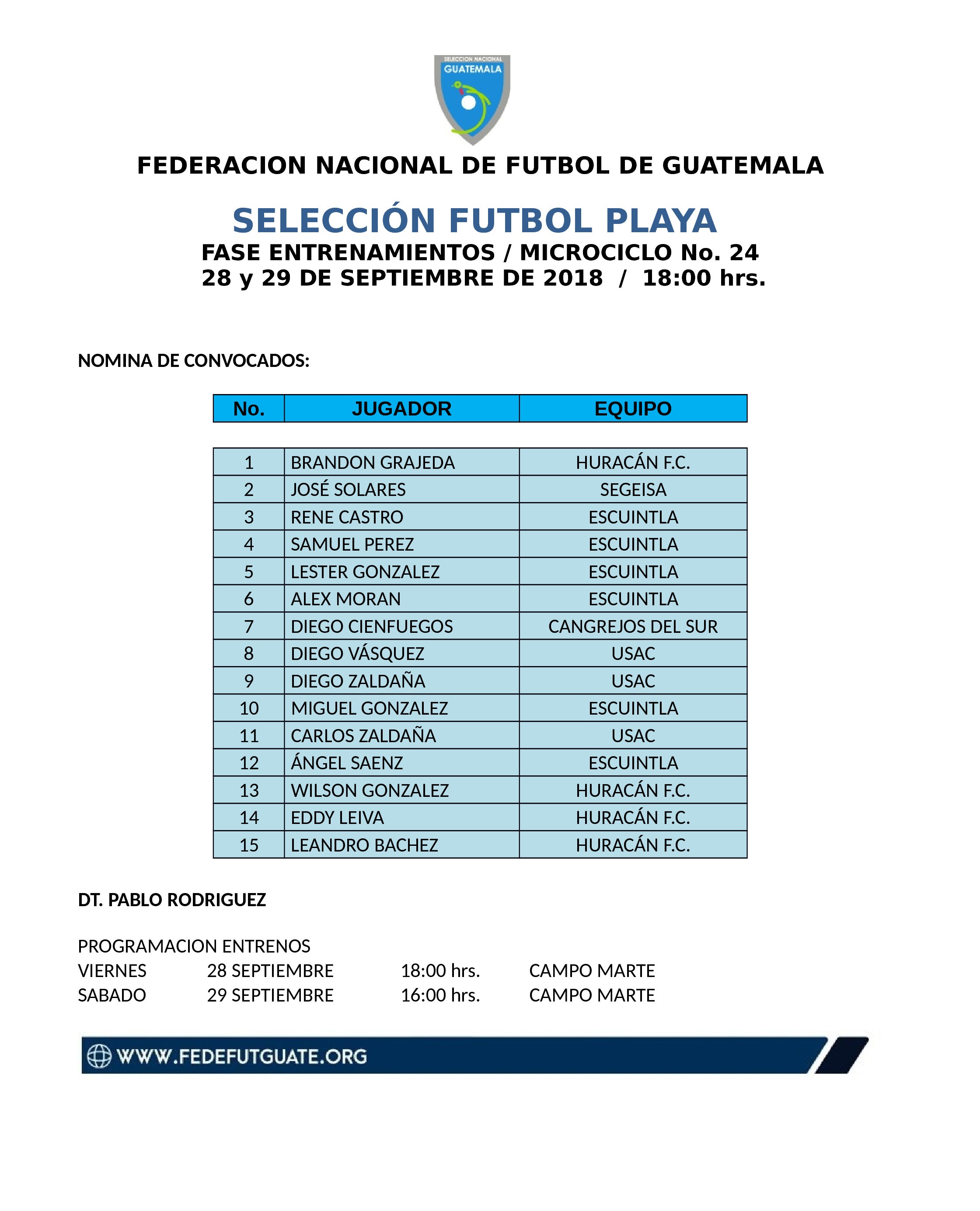 SELECCION FUTBOL PLAYA / MICROCICLO No. 24 / ENTRENAMIENTOS 28 y 29 DE SEPTIEMBRE 2018