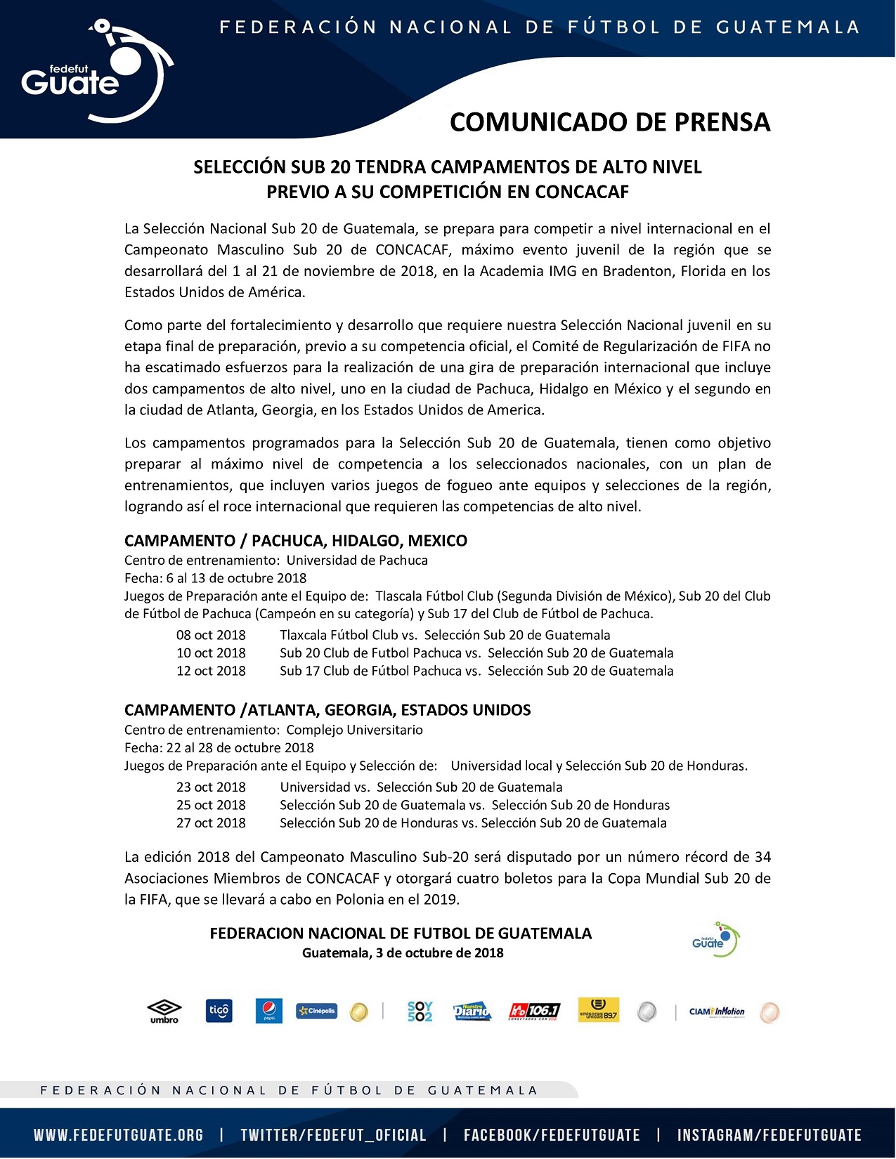 SELECCIÓN SUB 20 TENDRA CAMPAMENTOS DE ALTO NIVEL PREVIO A SU COMPETICIÓN EN CONCACAF