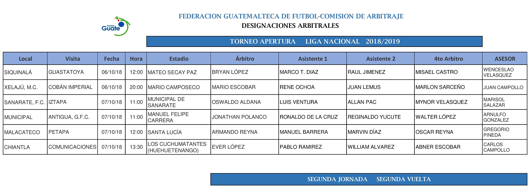 LIGA NACIONAL / NOMBRAMIENTOS ARBITRALES / JORNADA No. 13 / TORNEO APERTURA 2018/2019