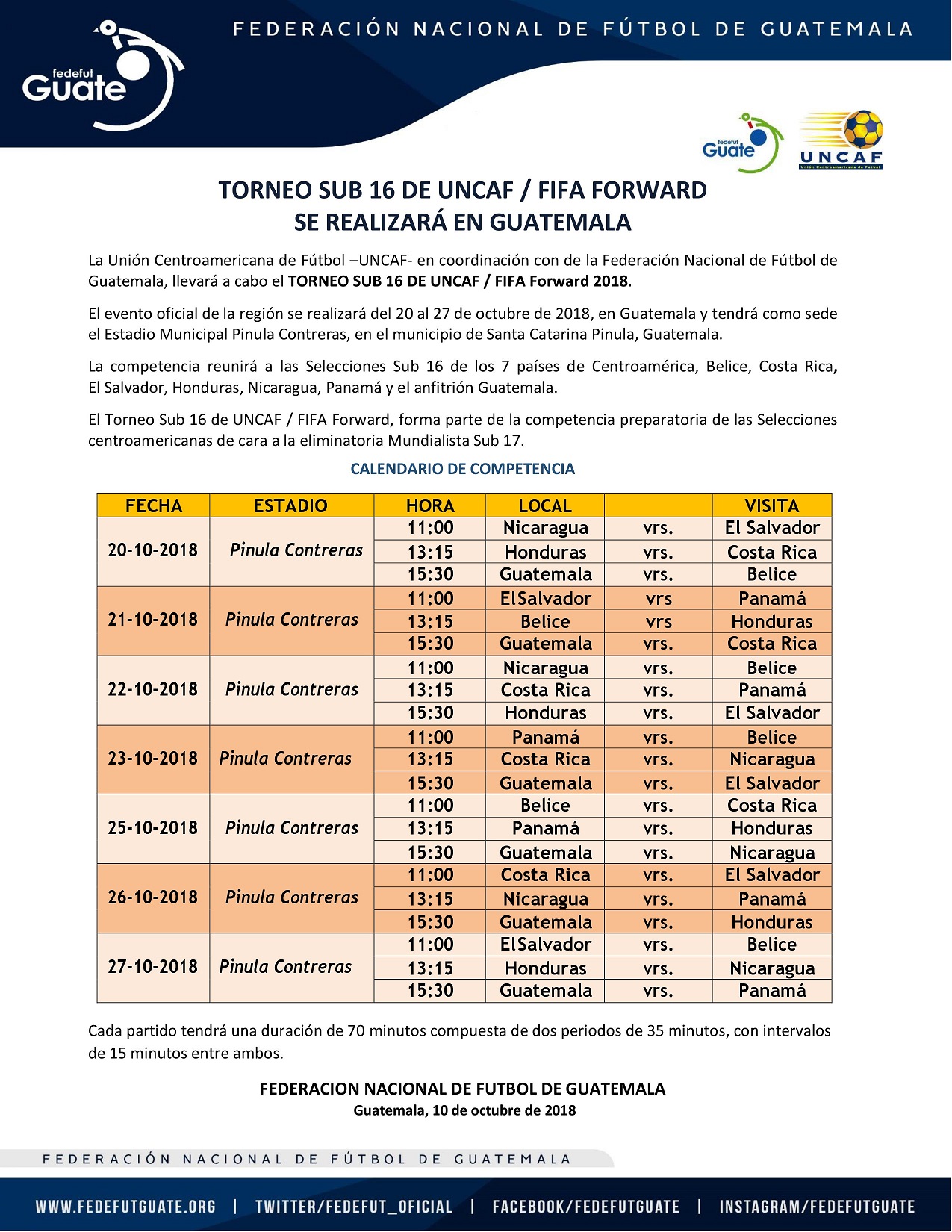 GUATEMALA SEDE DEL TORNEO INTERNACIONAL SUB 16 DE UNCAF / CALENDARIO OFICIAL