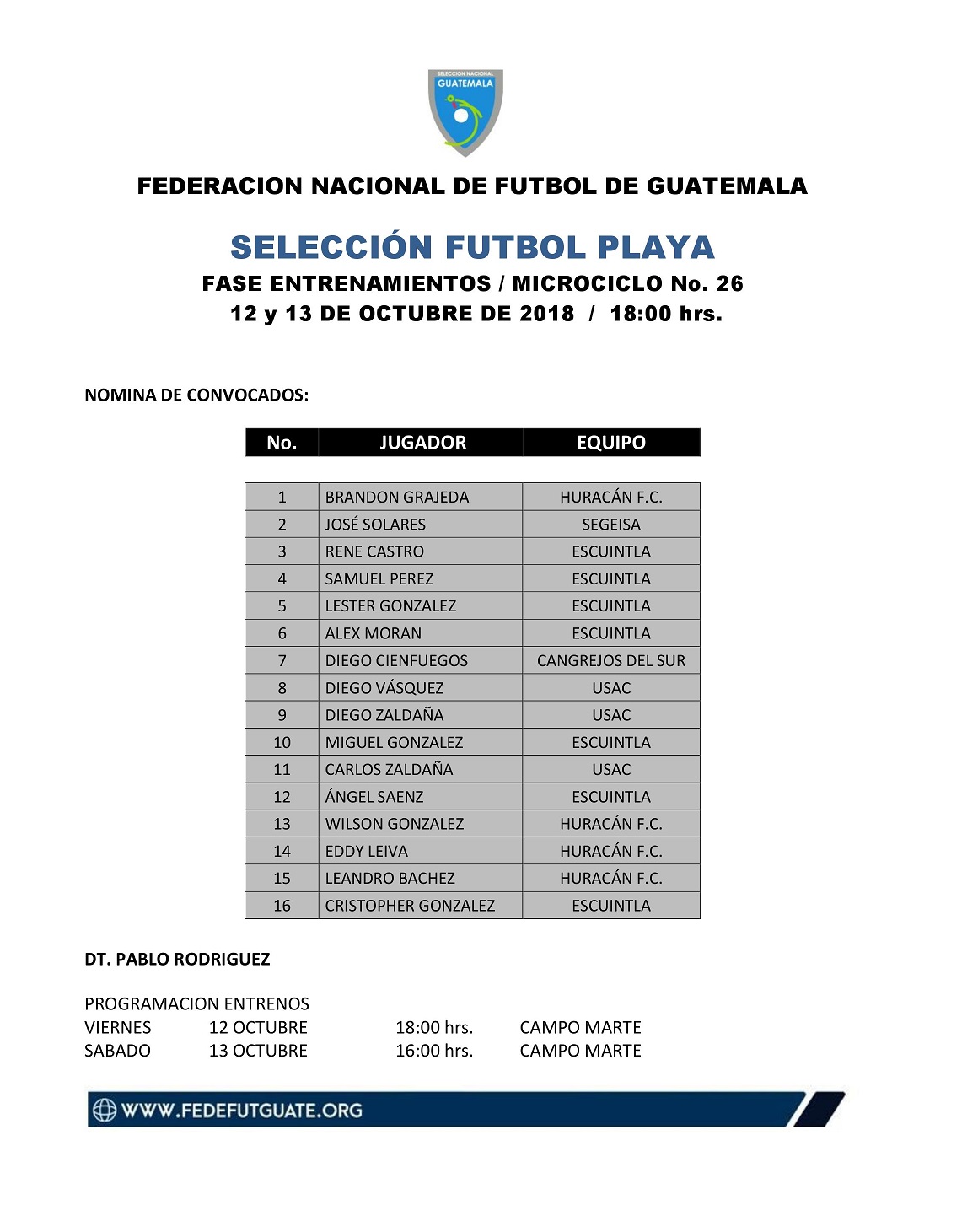 SELECCION FUTBOL PLAYA / MICROCICLO No. 26 / ENTRENAMIENTOS 12 y 13 DE OCTUBRE 2018